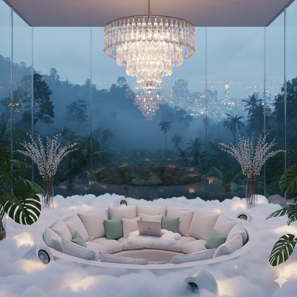 As he describes it: a cloud office in the rain forest. Shrooms are working.