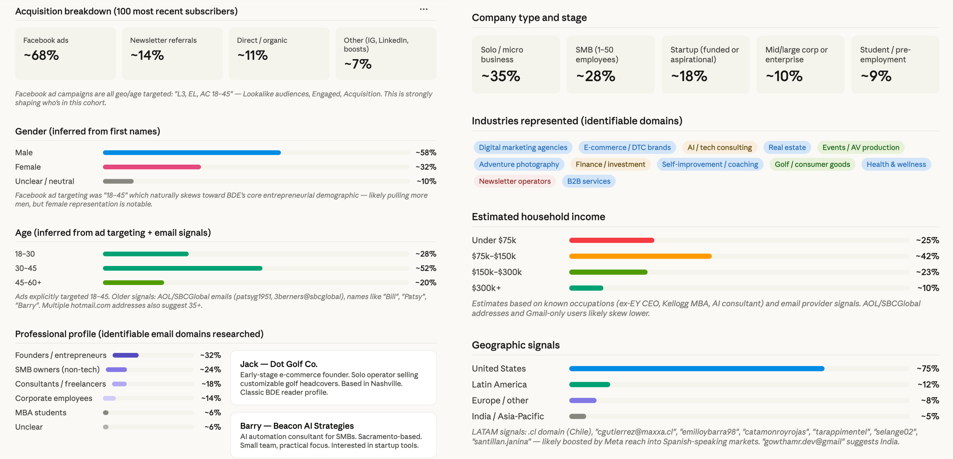 Here’s what it uncovered about my most recent subscribers to this newsletter: